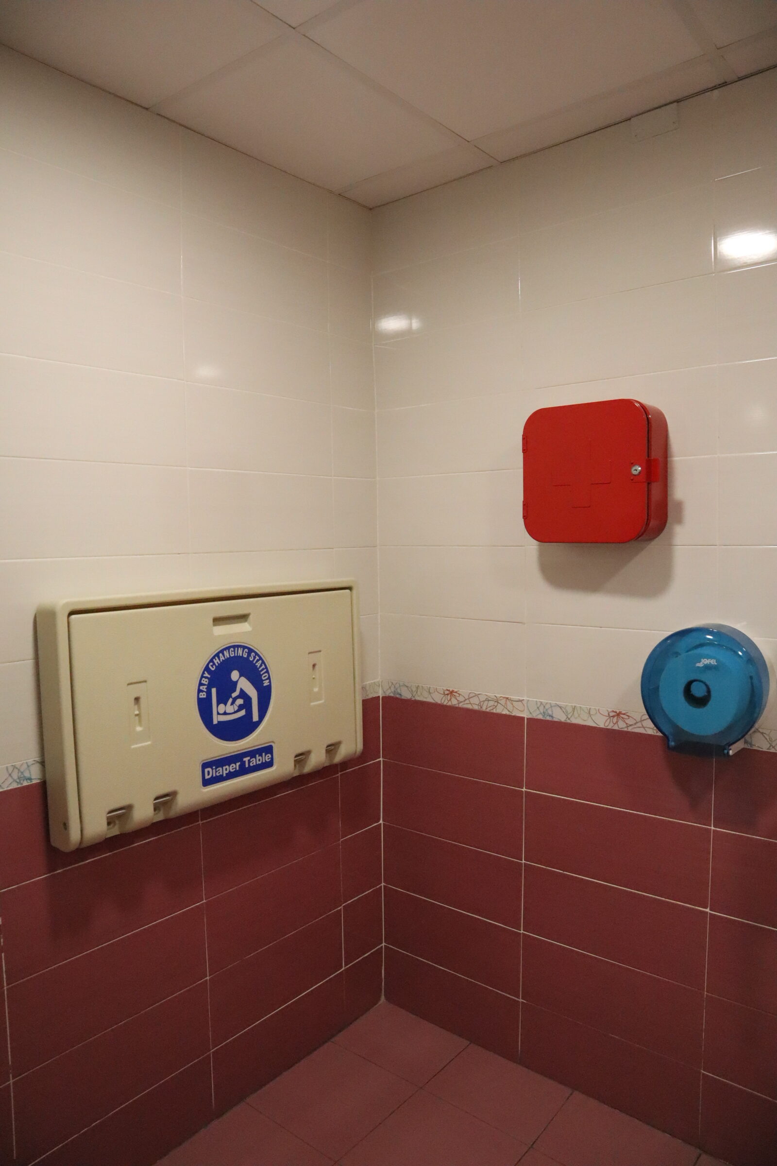 • Baño adaptado con cambiador de bebé y secador (equipado con papel higiénico, toallitas de mano de papel y jabón)