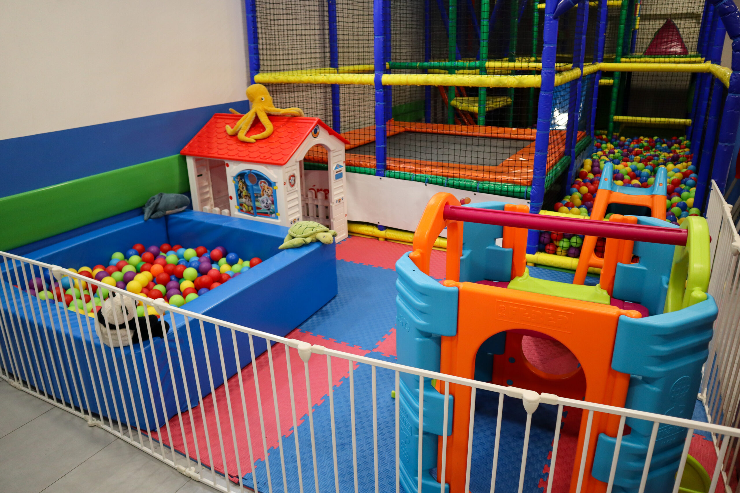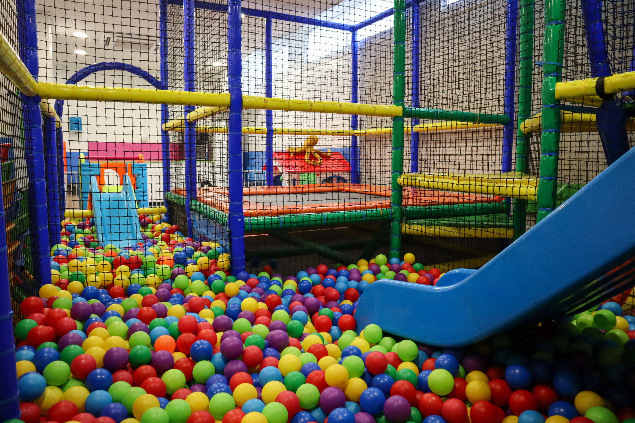• Parque de bolas de 3-12 años con cama elástica, tobogán, piscina de bolas y gymkana